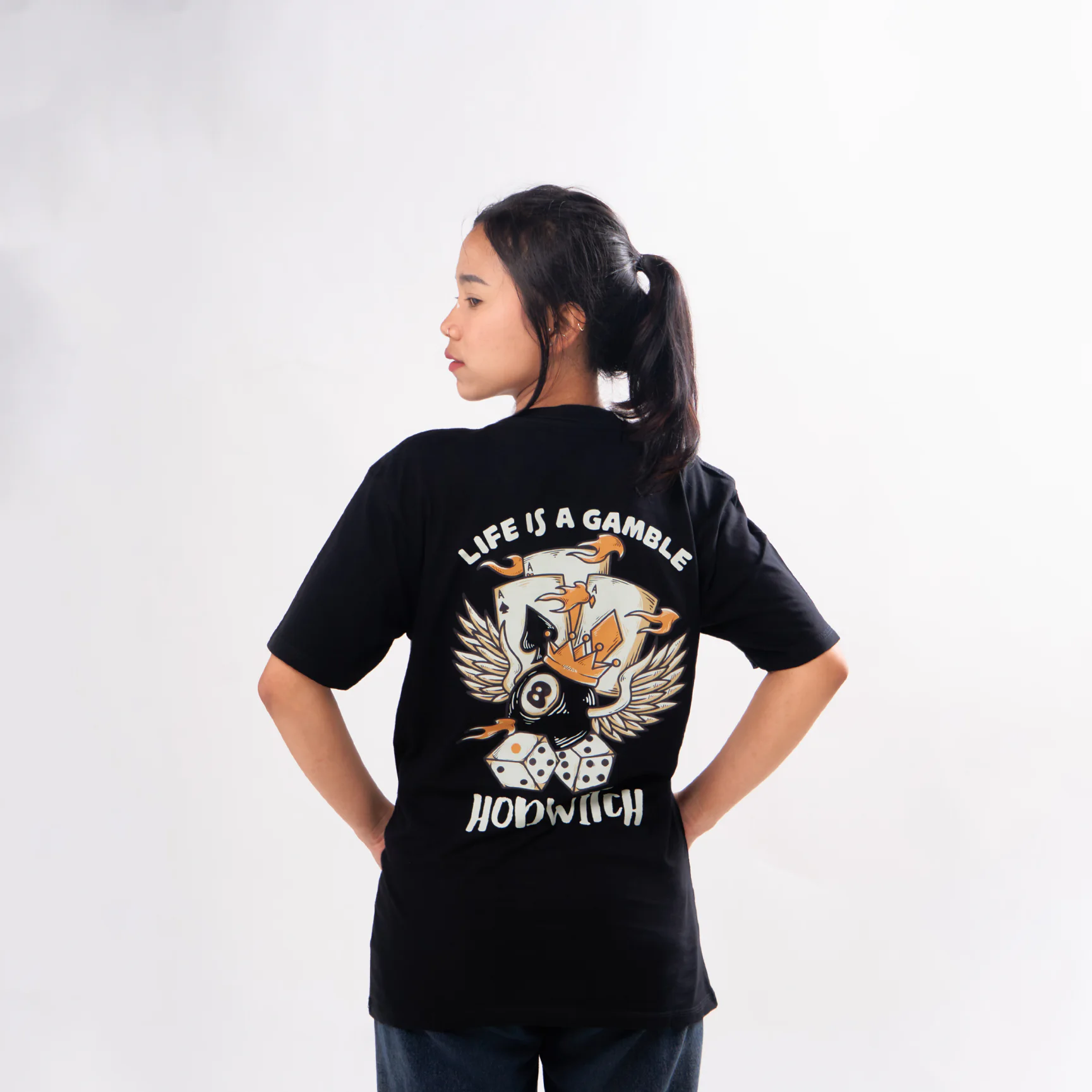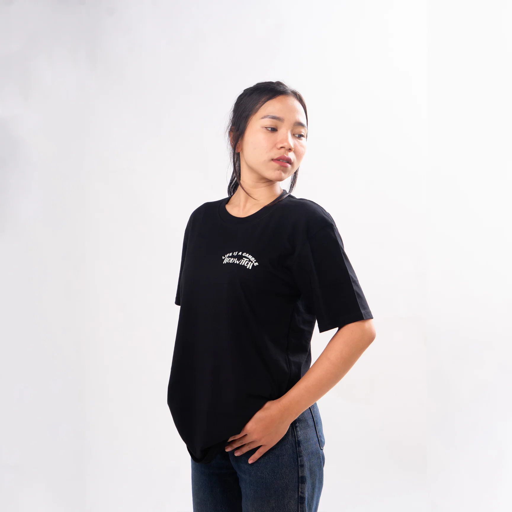 • Desain Menarik: Desain simpel dan elegan dengan DTF Printing pada kaos Hodwitch, cocok untuk berbagai acara, dari santai hingga semi-formal.